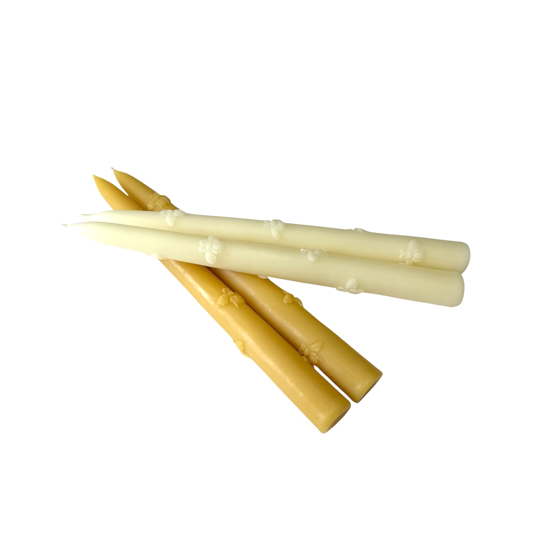 Beeswax tapers are dripless and virtually smokeless when kept away from drafts, making them the perfect choice for dining tables, events, or quiet evenings at home. For best results, keep the wick trimmed to ¼” before each use.